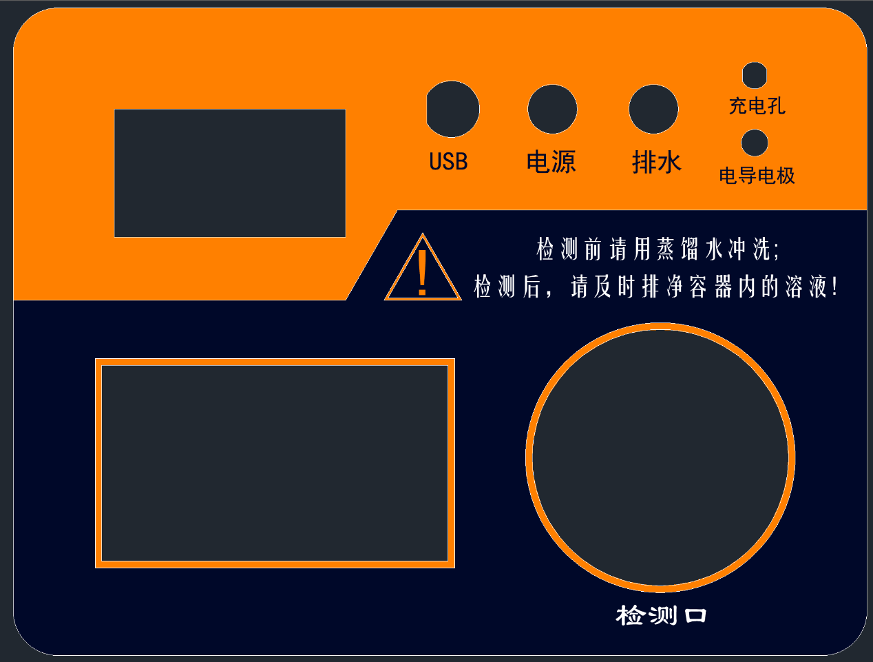 檢測口:待檢測的溶液可通過檢測口倒入內部檢測容器以便進行測量。